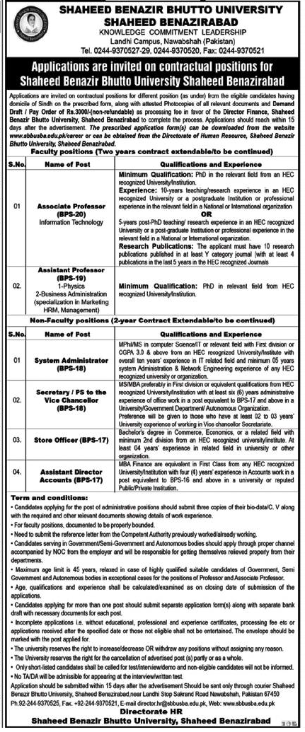 18-05-2024Associate Professor (BPS-20) (Information Technology), Assistant Professor (BPS-19) (Physics, Business Administration (Specialization in Marketing, HRM, Management), System Administrator (BPS-18), Secretary / PS to the Vice Chancellor (BPS-18), Store Officer (BPS-17) and Assistant Director Accounts (BPS-17).