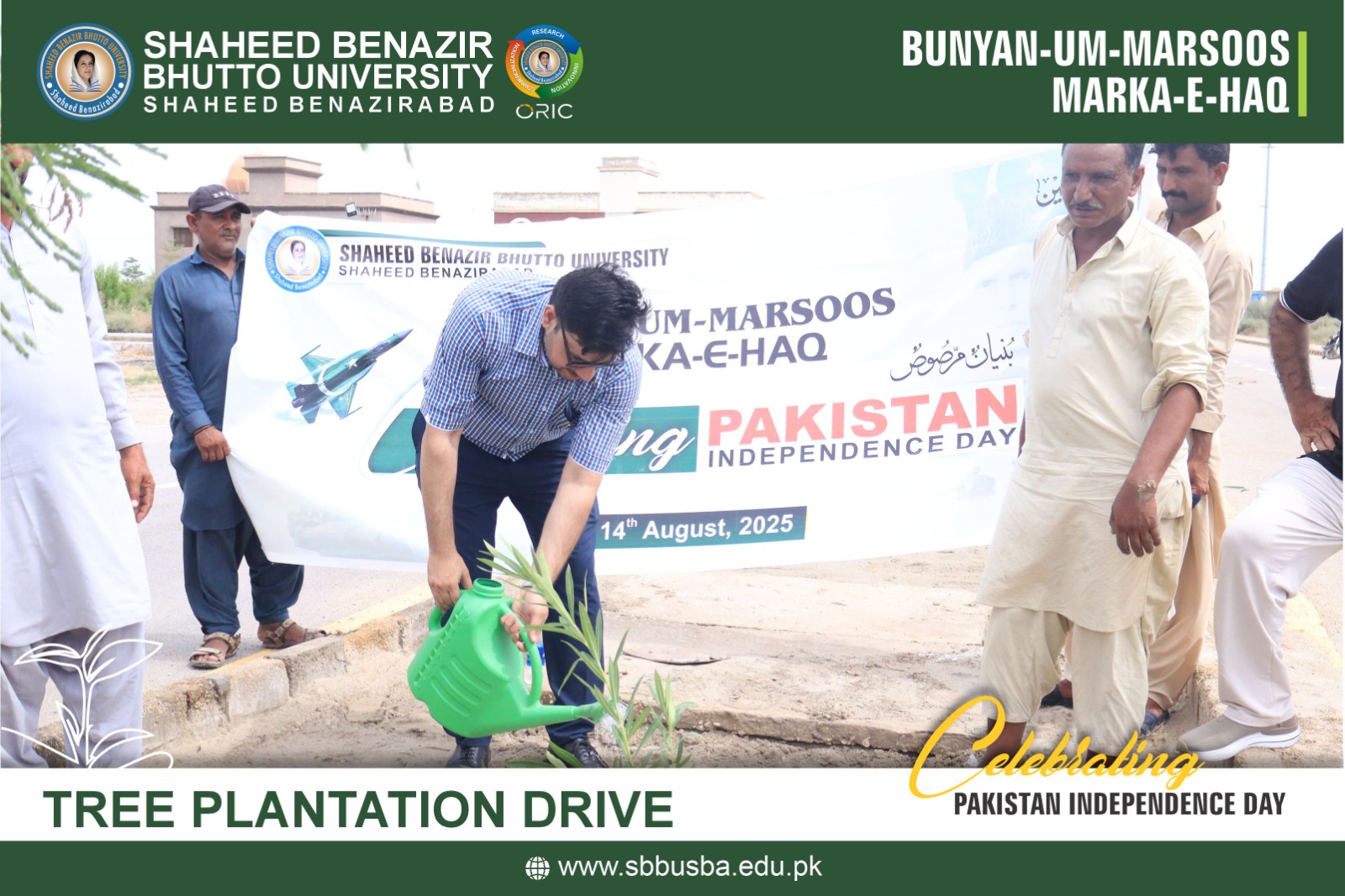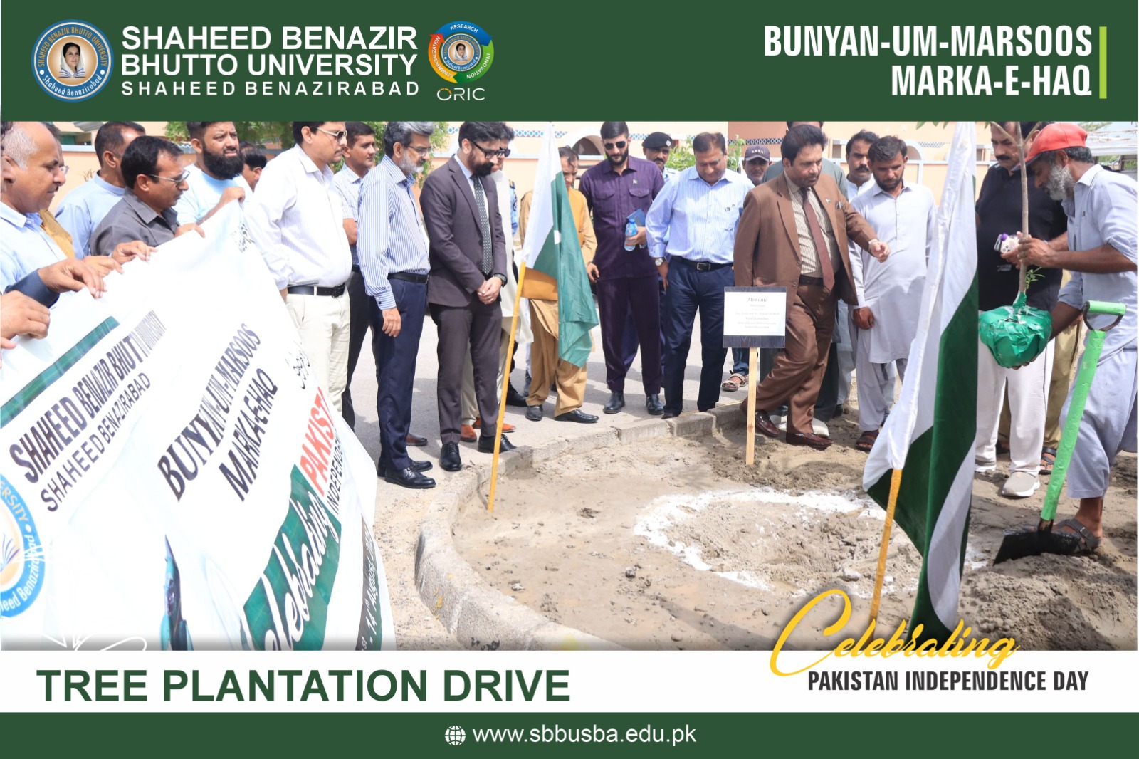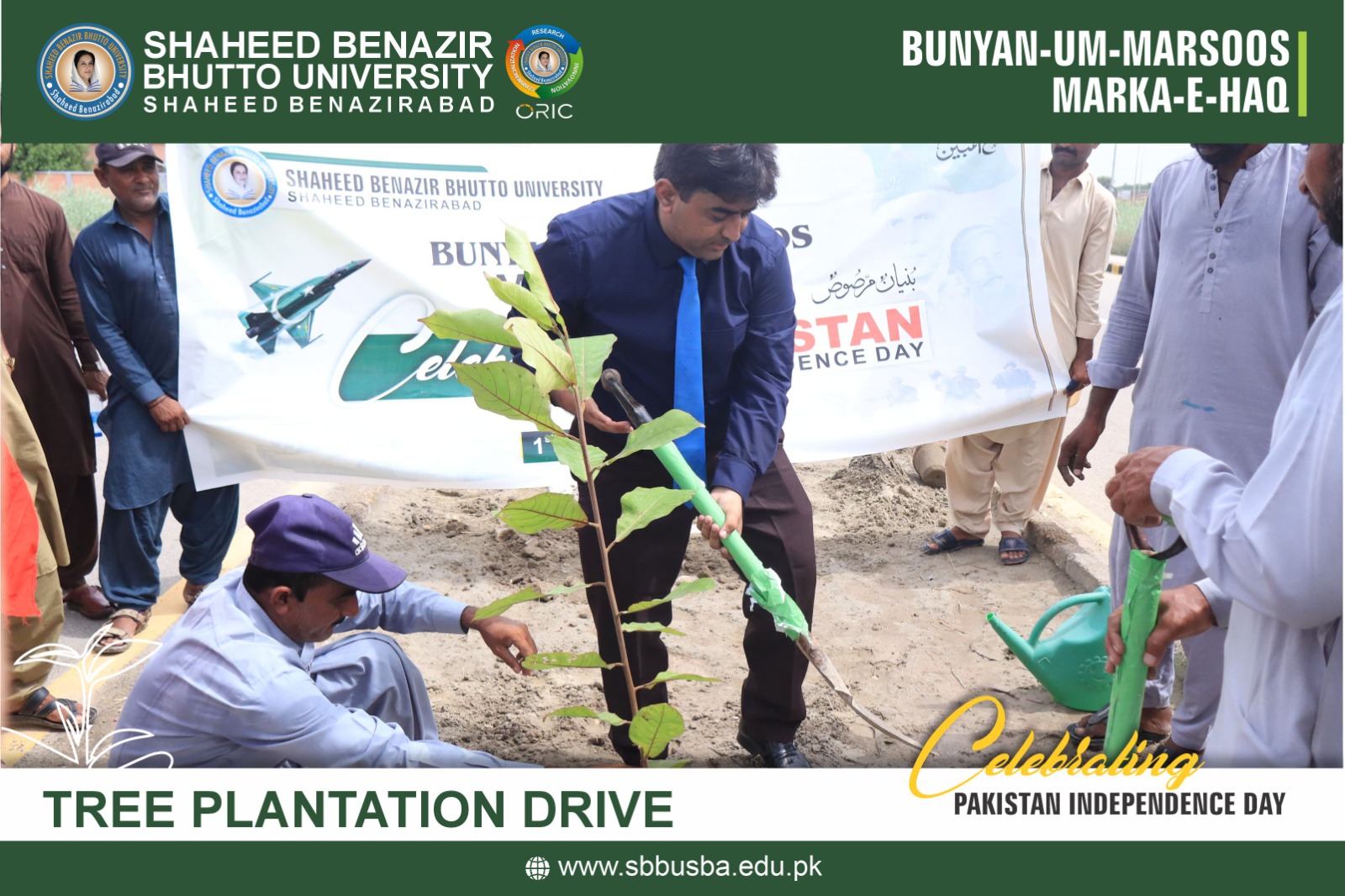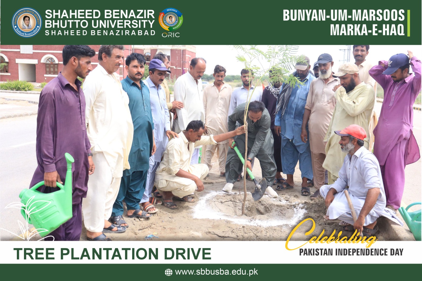 Tree Plantation Drive at Shaheed Benazir Bhutto University, Shaheed Benazirabad to celebrate Pakistan’s 78th Independence Day. Together, we pledge to contribute towards a greener, sustainable Pakistan