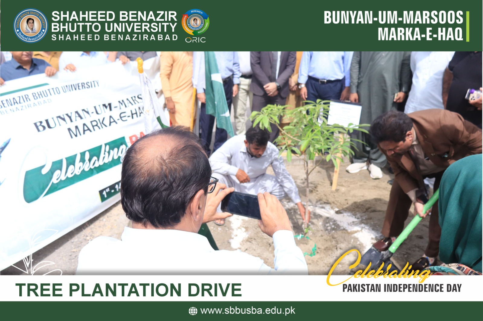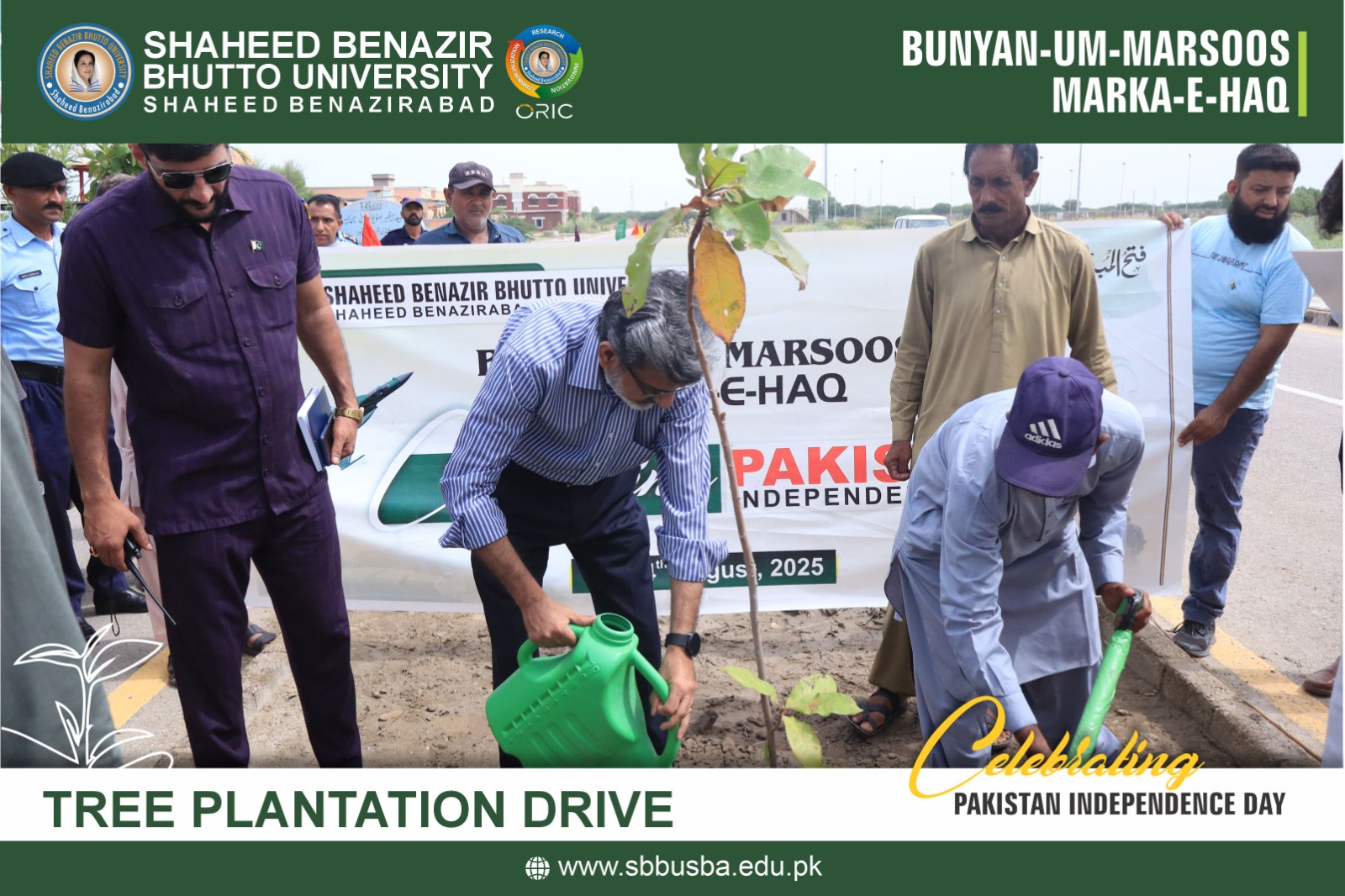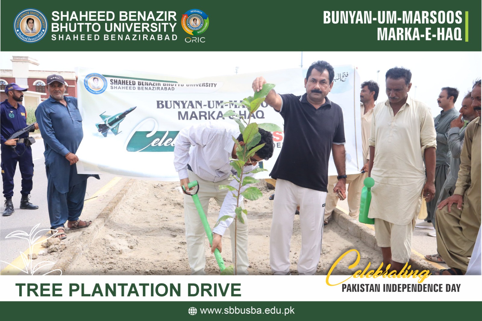 Tree Plantation Drive at Shaheed Benazir Bhutto University, Shaheed Benazirabad to celebrate Pakistan’s 78th Independence Day. Together, we pledge to contribute towards a greener, sustainable Pakistan