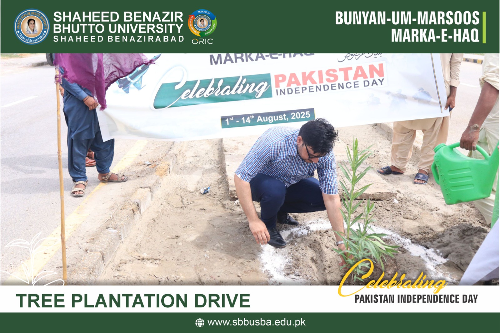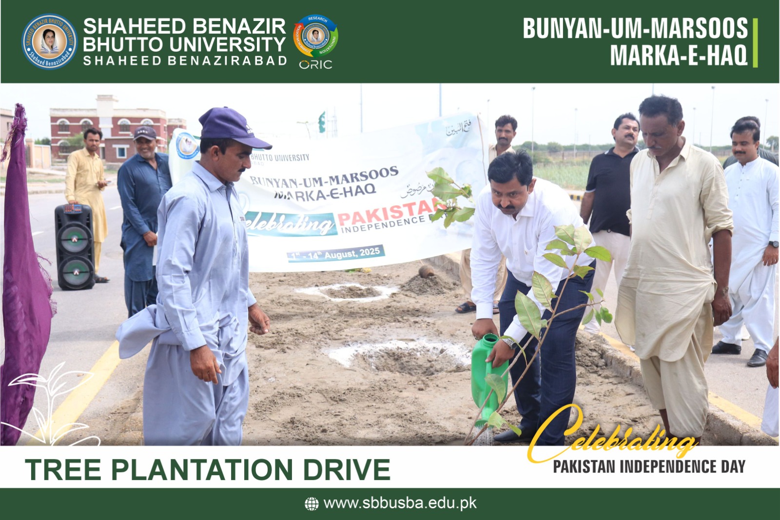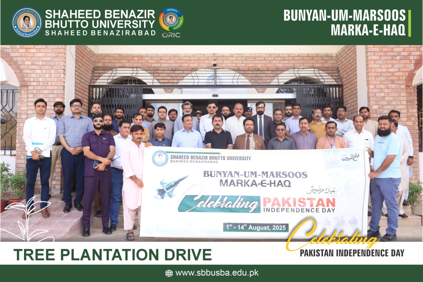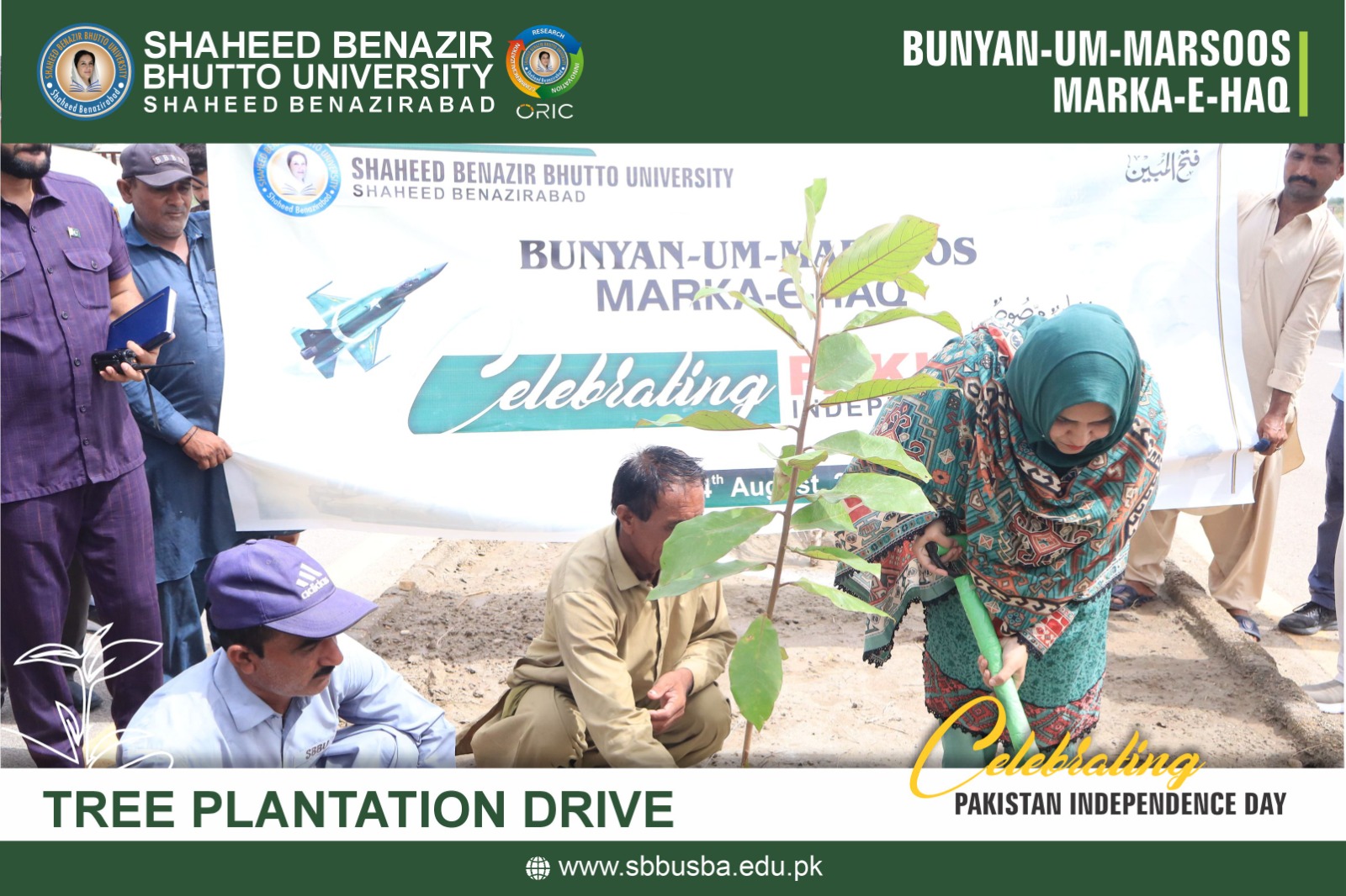 Tree Plantation Drive at Shaheed Benazir Bhutto University, Shaheed Benazirabad to celebrate Pakistan’s 78th Independence Day. Together, we pledge to contribute towards a greener, sustainable Pakistan