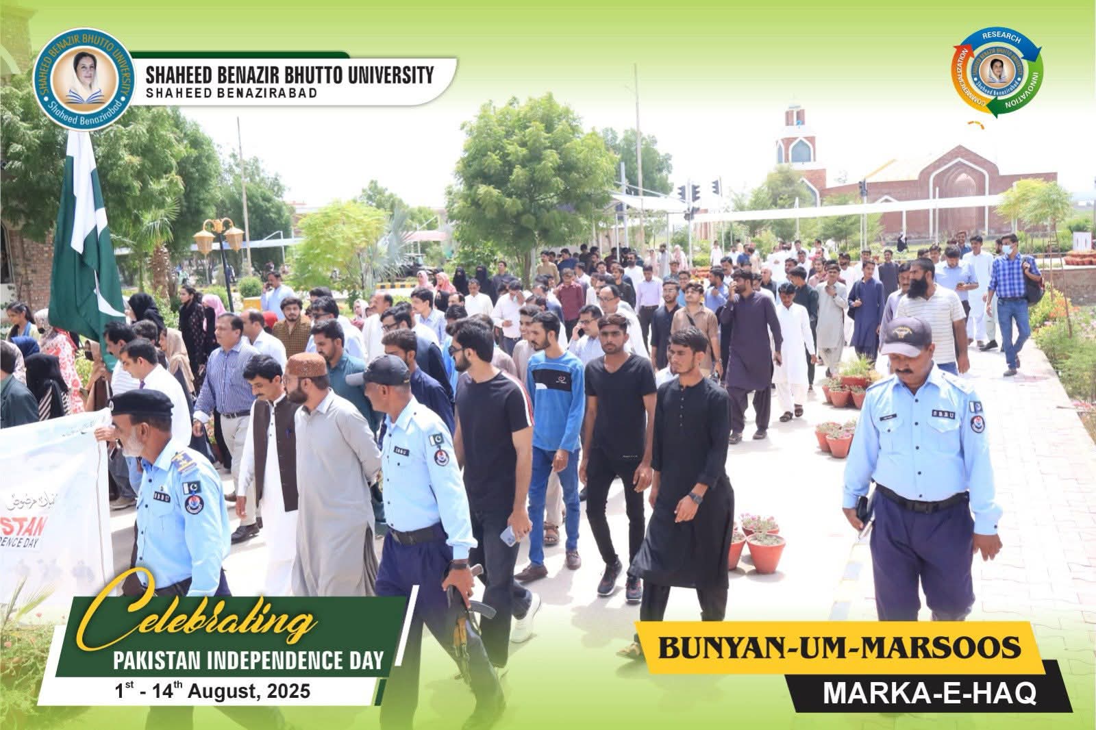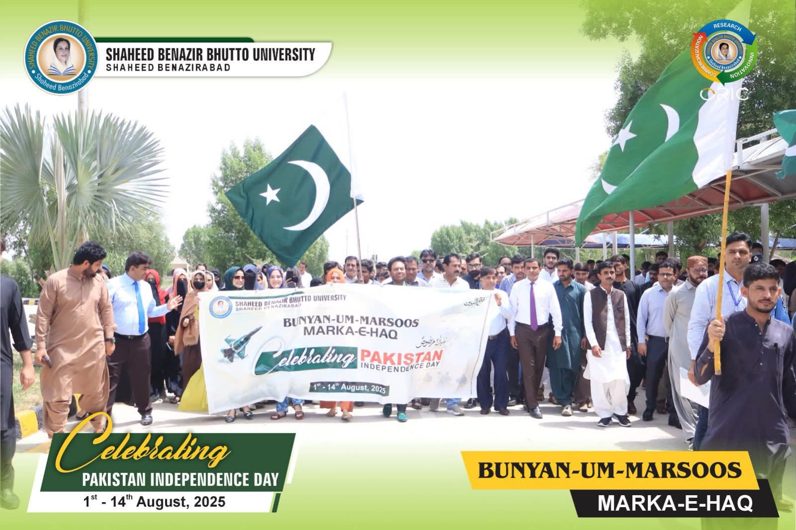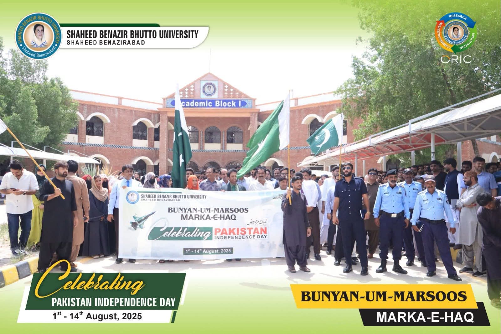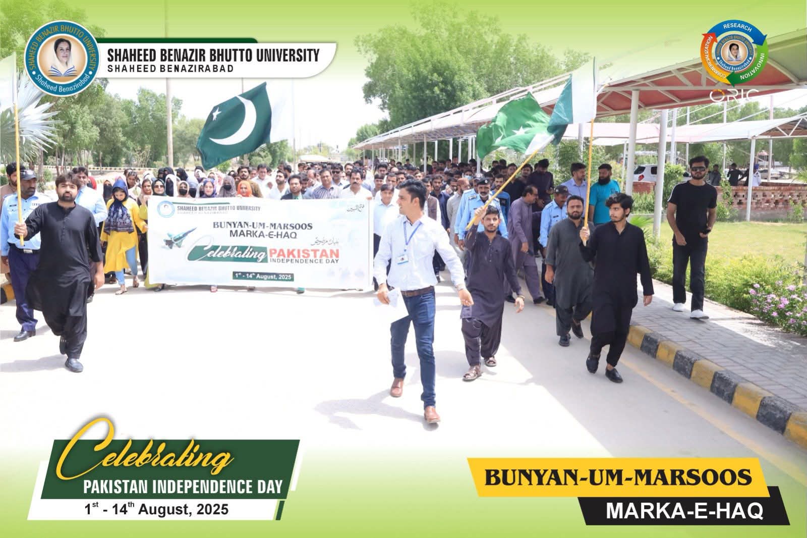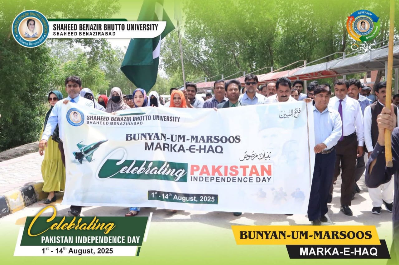 Shaheed Benazir Bhutto University, Shaheed Benazirabad, organized a Solidarity Walk in honour of the brave soldiers of Operation Bunyan-Um-Marsoos under the theme “Marka-e-Haq” and Independence of Pakistan