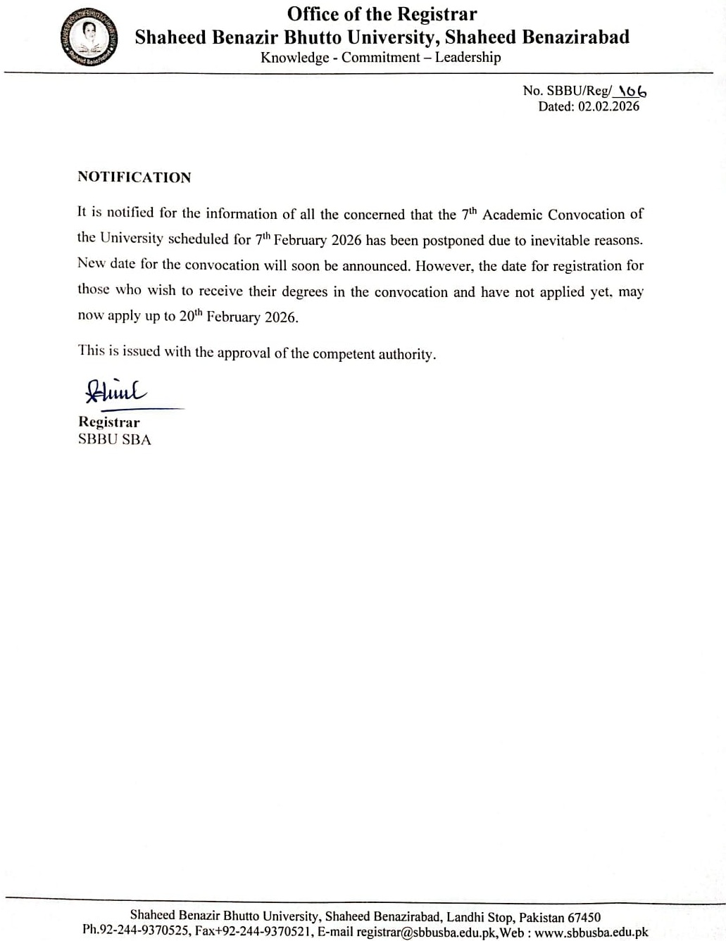 I feel immense pride in welcoming you all to our prestigious Alma mater, which is an illustrious landmark in the dissemination of education and learning. Shaheed Benazir Bhutto University, Shaheed Benazirabad, since its inception has been incessantly working and playing a catalytic role in uplifting and enlightening students through quality education. The institution empowers students to acclimatize with the demanding challenges of this ever-growing, innovative world.