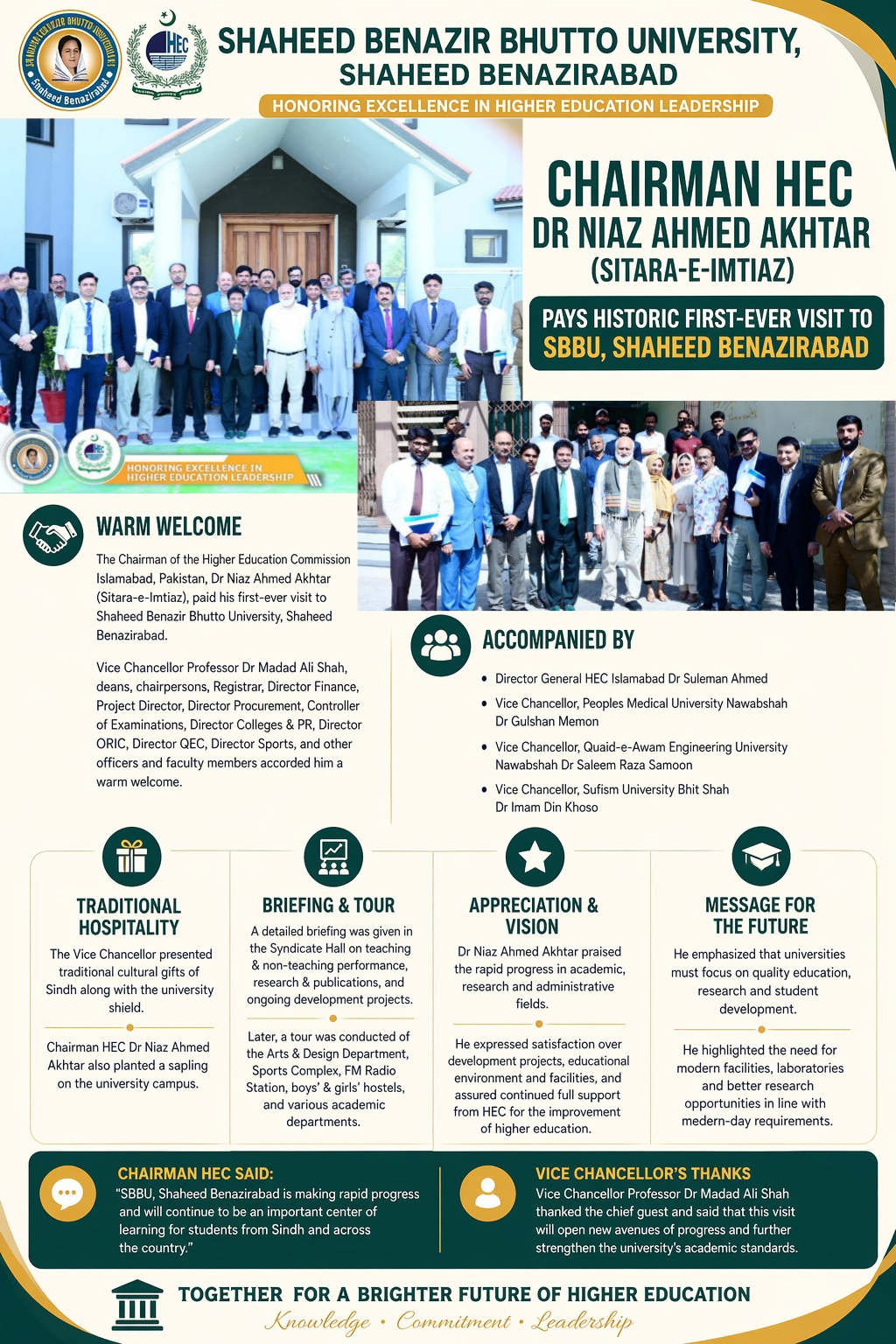Shaheed Benazir Bhutto University, Shaheed Benazirabad has secured the HEC NOC to launch a PhD in Information Technology under the leadership of Engr. Prof. Dr. Madad Ali Shah. The program will officially begin after approval from Sindh HEC, marking a major step toward advanced research and academic excellence at SBBU. Congratulations to the entire SBBU community on this remarkable milestone! » View Details 18-03-2026