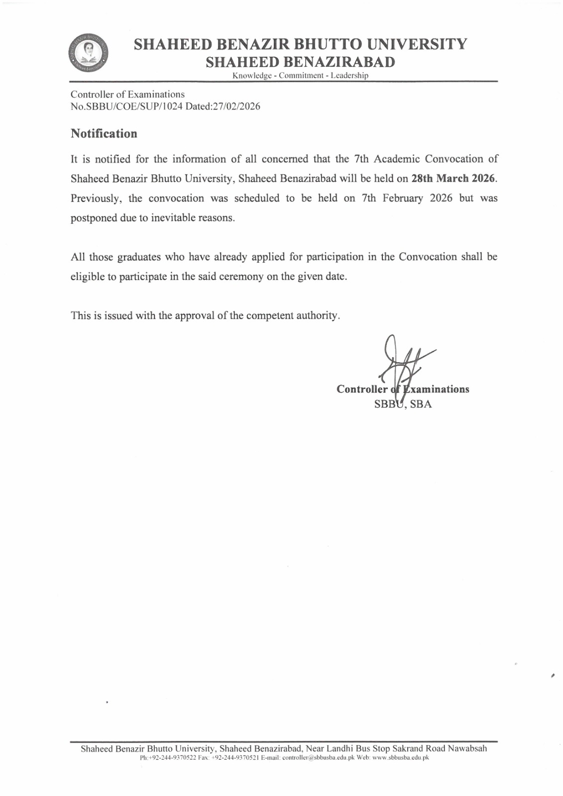 Procurement of Stationary/Examination and Convocation Materials for SBBU SBA.