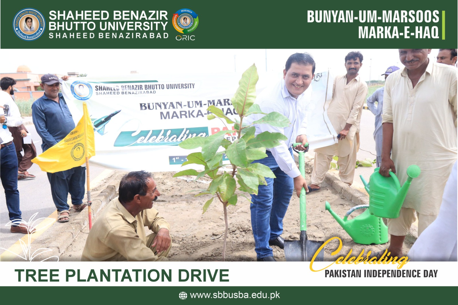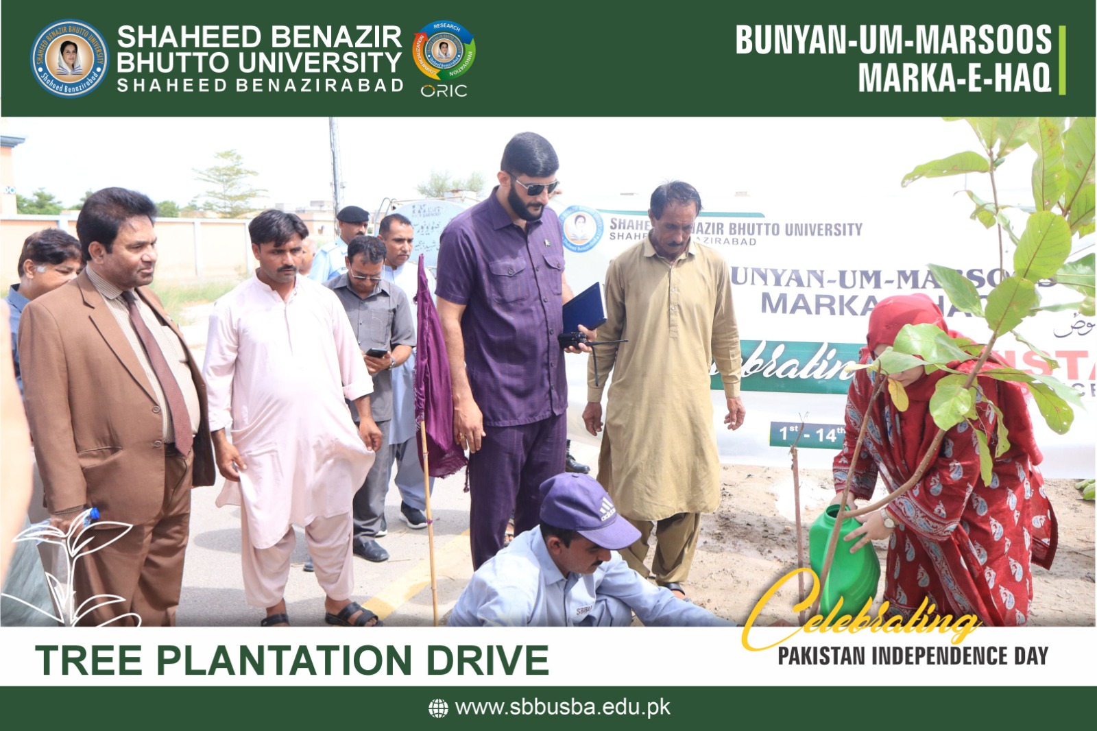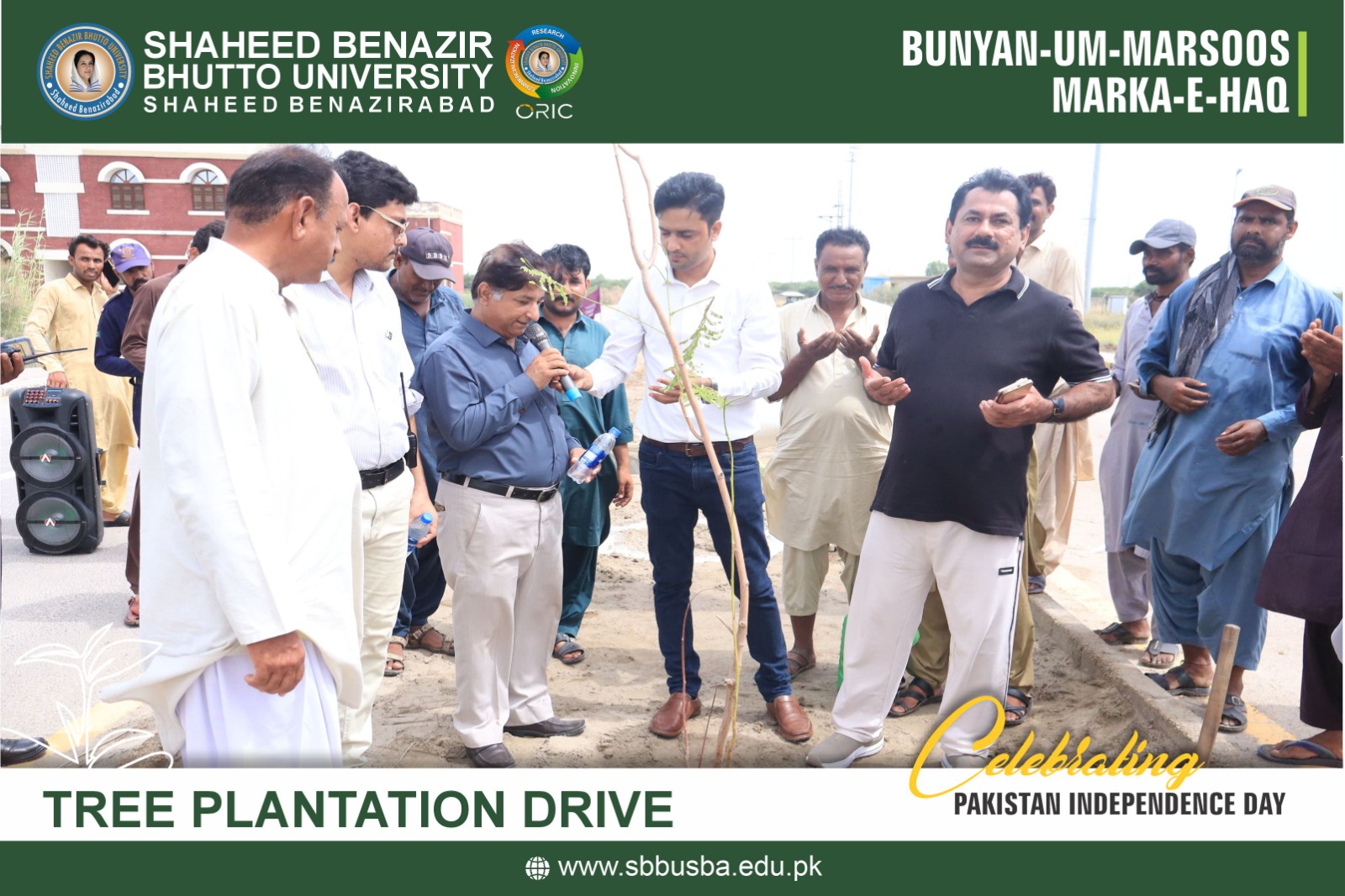 Tree Plantation Drive at Shaheed Benazir Bhutto University, Shaheed Benazirabad to celebrate Pakistan’s 78th Independence Day. Together, we pledge to contribute towards a greener, sustainable Pakistan