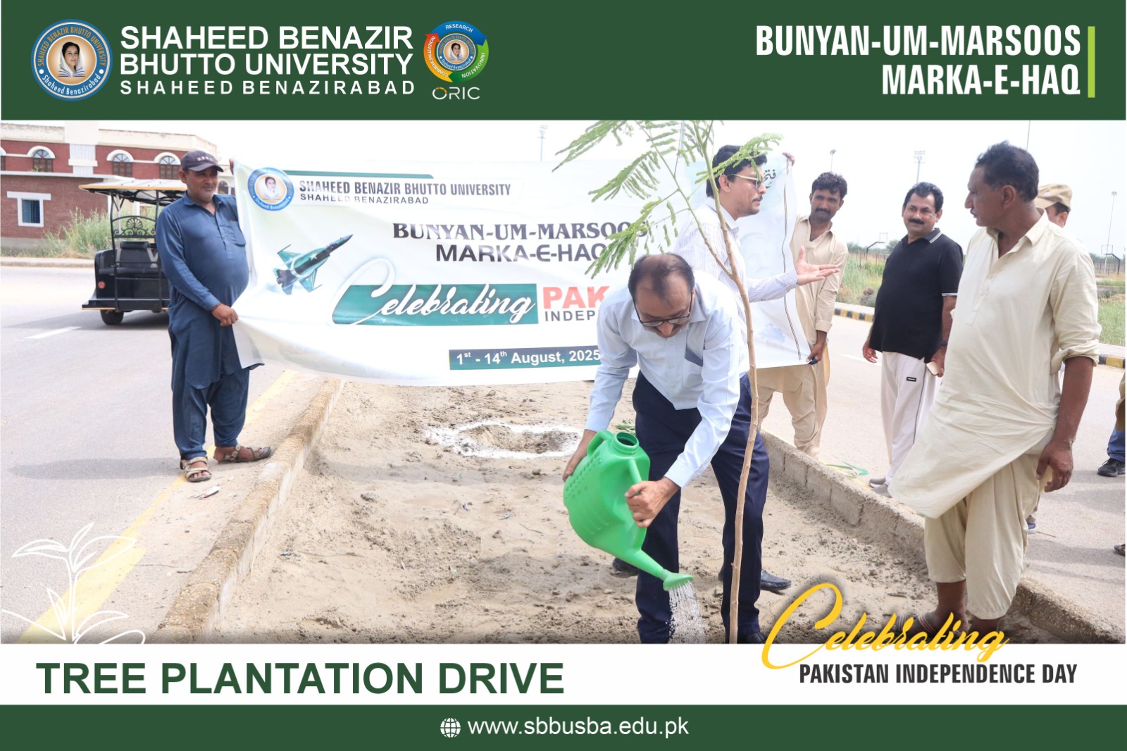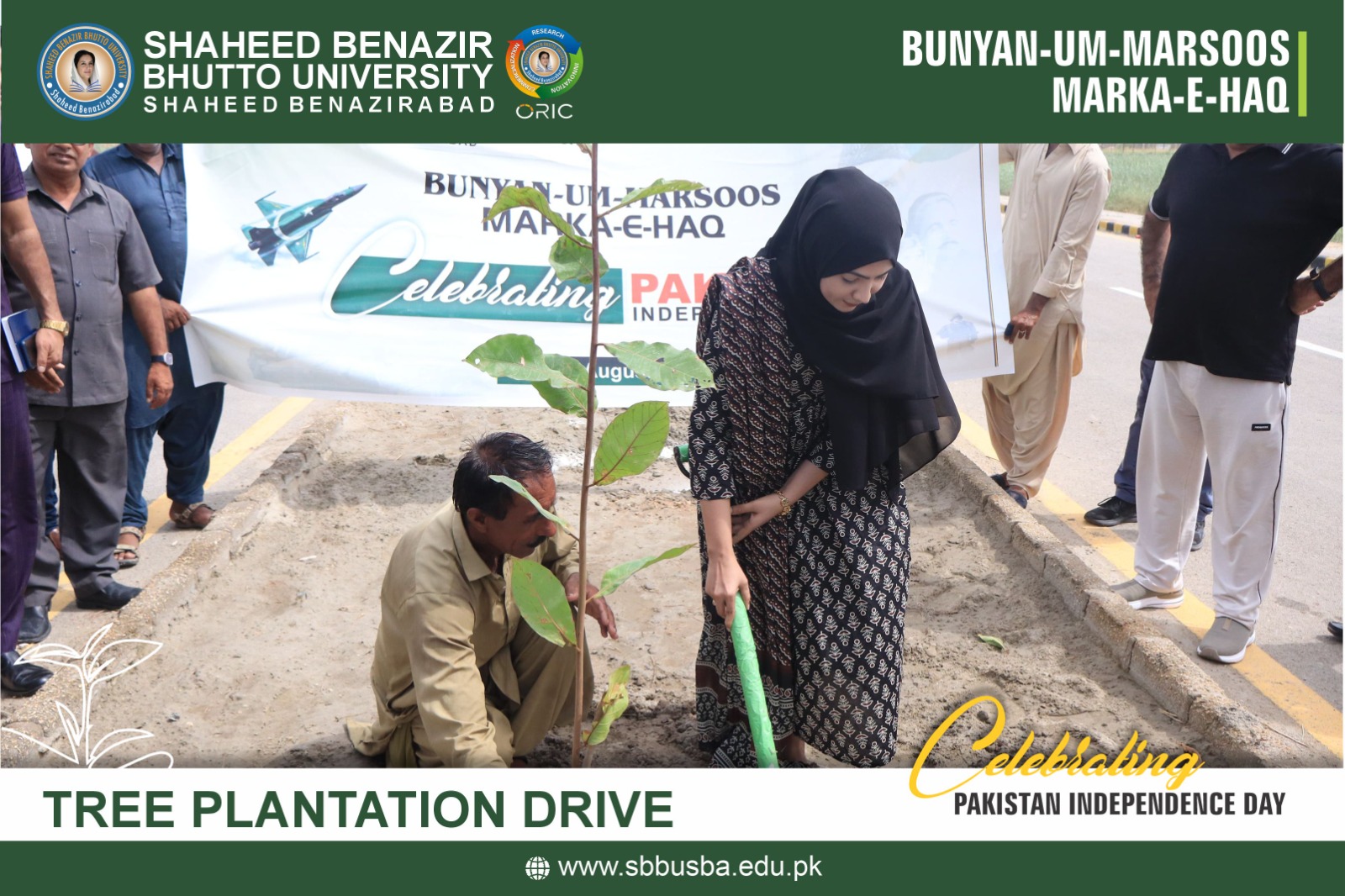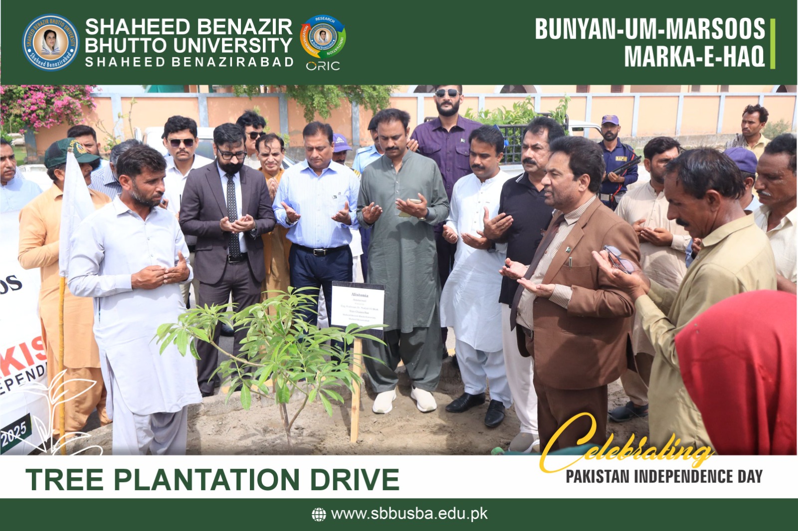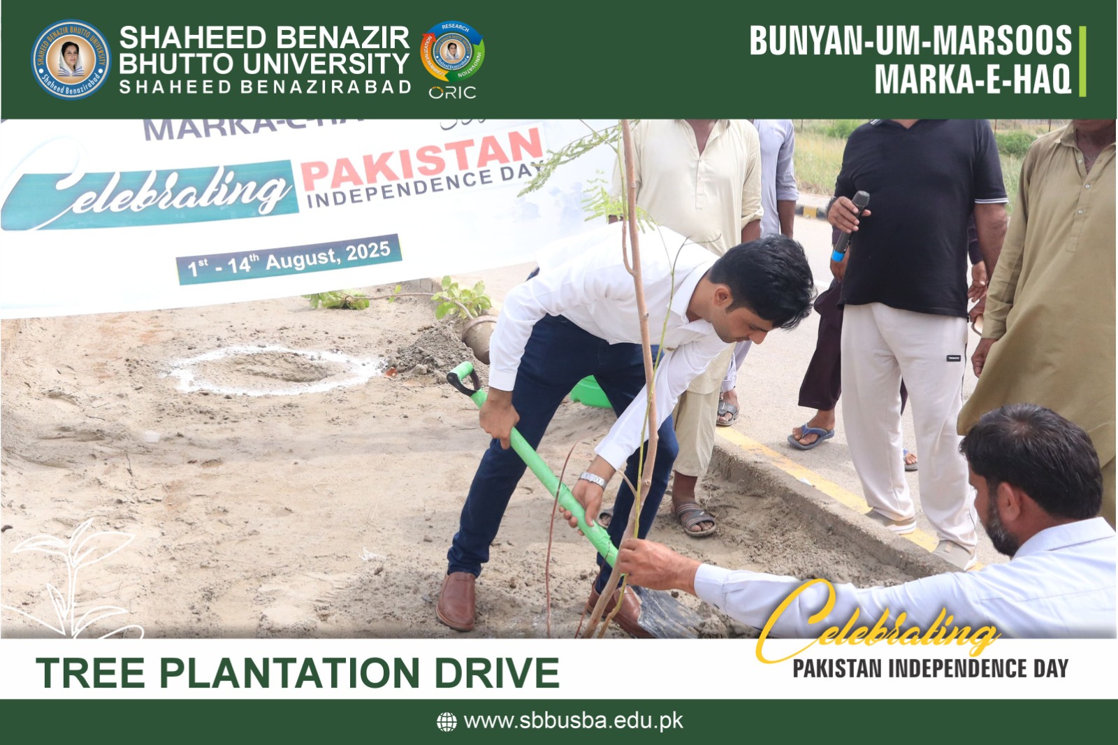 Tree Plantation Drive at Shaheed Benazir Bhutto University, Shaheed Benazirabad to celebrate Pakistan’s 78th Independence Day. Together, we pledge to contribute towards a greener, sustainable Pakistan