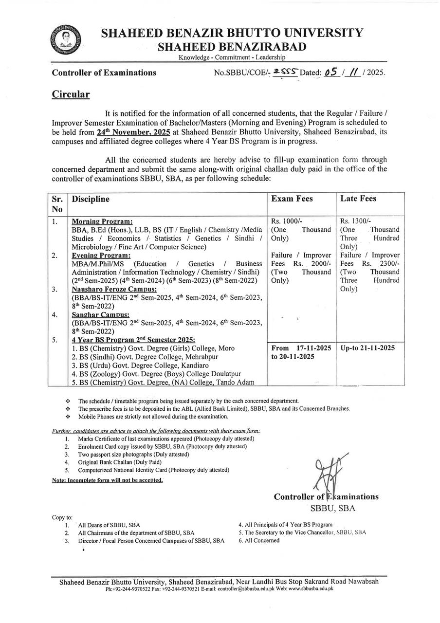 SBBU SBA Main Campus will remain closed on (Monday) 11th November, 2024 on the occasion of 753 Urs of Hazrat Syed Ali Asghar Shah(Sakhi Jam Dattar) as Local Holiday.